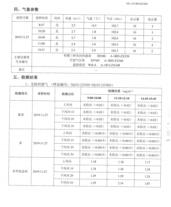 公司2019年11月27日委托山东嘉源检测技术有限公司对vocs进行了检测,检测结果如下图:……